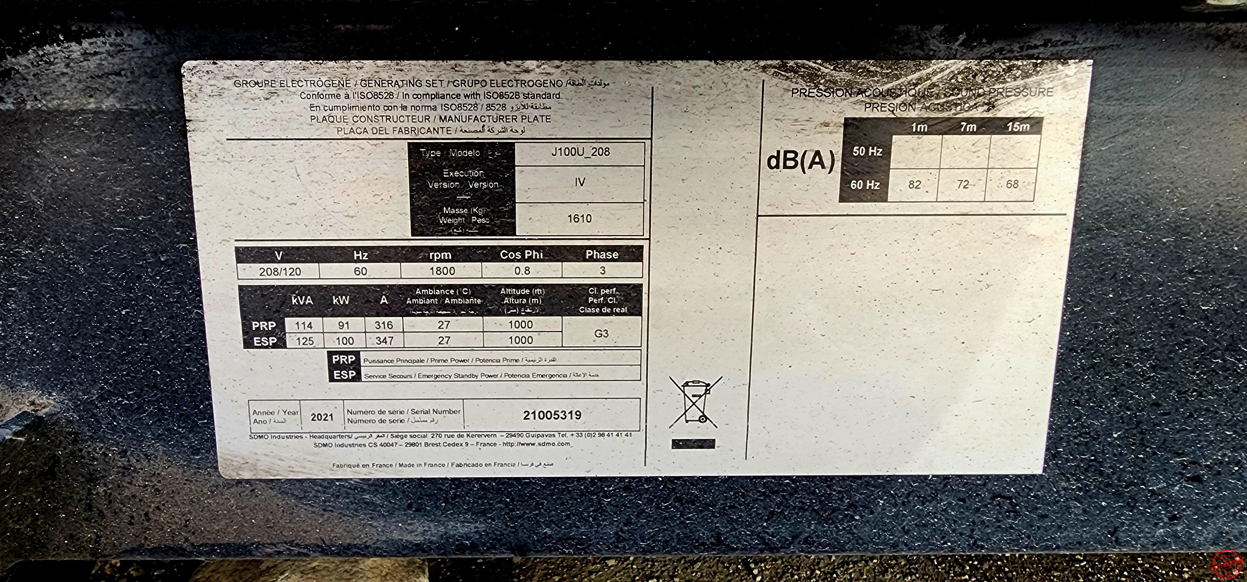 2021 SDMO 100 KW